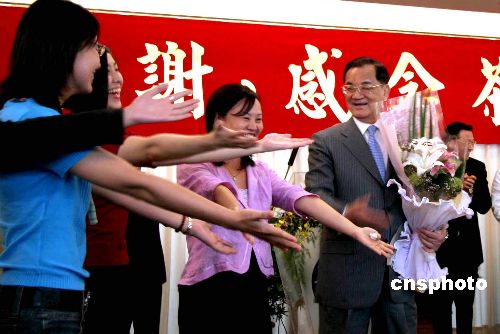 國民黨的黨員和黨工今天特地為連戰準備了鮮花和美味茶點,并用擁抱、親吻和掌聲表達對連戰的依依不舍。
