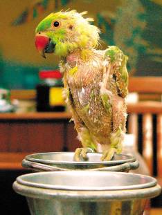 黃奕禎升上4年級后,因功課繁重,每天有寫不完的功課,還要補習,沒時間再陪“雅腳”玩,每天放學回家,“雅腳”總是高興的跳著、叫著,她卻只能偶爾陪它玩一下,就趕著做功課,沒多久,竟發現“雅腳”開始掉毛,原以為是換毛,后來竟發現除了頭部,全身羽毛都快掉光了,并多次目睹“雅腳”用嘴啄著自己羽毛,一根根的拔掉,愈來愈丑。