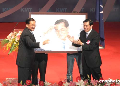 馬英九致詞后,代表全體黨員送一份特別的禮物給連戰。這份禮物據說是參考好萊塢明星金凱利主演的“楚門的世界”電影海報的構想,將連戰拍過的照片,一張張的拼成巨幅的大頭照。
