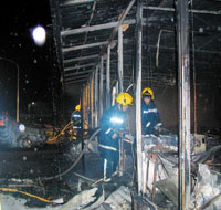 滅火過(guò)程中,外勞仍不斷攻擊戒備警員,部分警車遭砸毀。消防車滅火后留守現(xiàn)場(chǎng)也遭波擊。警方于凌晨零時(shí)30分決定撤離所有人車,退到廠房圍籬外,并緊急征調(diào)暴動(dòng)警力支持。
