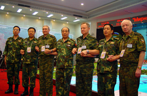 “和平使命—2005”中俄聯合軍事演習第二階段22日結束。中俄雙方總導演對這一階段取得的成果表示祝賀,對表現突出的兩國軍官給予褒獎,并頒發了獎章。
