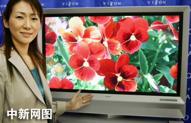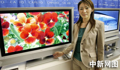 2005年8月23日,日本家用電器巨頭——三洋公司的一位職員展示著該公司最新款42英寸高清等離子電視——“PDP-42HD”。三洋公司將從10月21日起在日本國內市場推出“Capujo”牌電視,每臺電視的價格預計是56萬5千日元(5140美元)