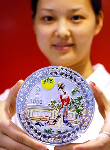 8月24日,一套特制《中秋彩銀紀念章》在安徽省巢湖某金店首發。該套銀質紀念章分大小3枚,直徑分別為120毫米、50毫米和40毫米。作者:何希斌