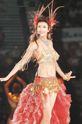 中新網(wǎng)8月27日電 據(jù)香港媒體報道,《譚詠麟歌者戀歌濃情三十年演唱會》前晚在紅館開鑼,首場嘉賓有劉德華和以“火美人”造型出現(xiàn)的黃伊汶(Emme),當(dāng)Emme和阿倫(譚詠麟)跳貼身辣舞時,她的舞衣卻不慎扣到阿倫衫上的飾物,互相拉扯下Emme的胸罩幾乎被扯甩走光,Emme即用手按著,她事后表示:“其實有打底,所以不擔(dān)心走光。”