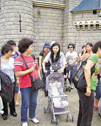 邱淑貞將幼女與菲傭安頓在附近石壆休息,由菲傭喂幼女進食,而她與夫婿沉嘉偉打過招呼后,又獨自到“巴斯光年星際歷險”拿取Fast Pass(快證),十分懂得節省時間。