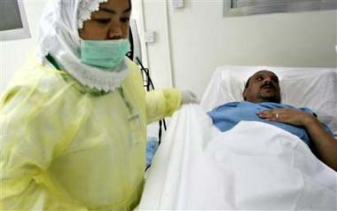 圖為一名踩踏中受傷的朝拜者在醫(yī)院接受護(hù)士檢查(章田)