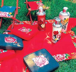 空閑的時(shí)候,不妨到郊外野營(yíng)一番,野餐巾、野餐坐墊等戶外活動(dòng)所需的一應(yīng)用品,如果融入以紅色為主的傳統(tǒng)布藝元素,同周圍的綠地,樹(shù)陰,陽(yáng)光融合,有一種入骨的古典華麗,讓你享受不一樣的戶外活動(dòng)時(shí)光。
