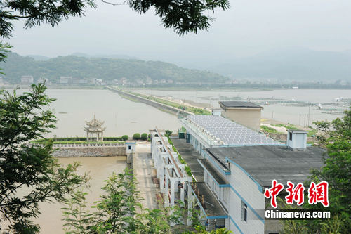 中新網臺州7月14日電(記者 柴燕菲 實習生 倪幼杰 通訊員 金宗炳 趙雨棽)日前,位居世界第三的浙江溫嶺江廈潮汐試驗電站建成了我國首座建在潮汐電站廠房樓頂的太陽能示范電站,該太陽能電站利用廠房樓頂和車棚空間,總裝機容量為40千瓦、預計年發電45000度(千瓦時)。據專家介紹,該電站的建成,可節約標準煤18噸,年減排二氧化碳46噸、減排碳粉塵12噸、減排二氧化硫2噸,真正成為潮汐能、太陽能并用的無污染清潔能源電站。(完)