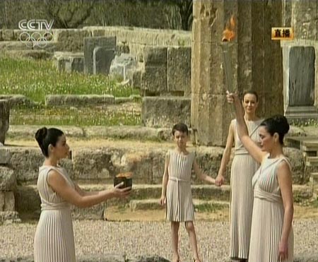 當地時間上午十一時,北京奧運圣火采集儀式正式開始。