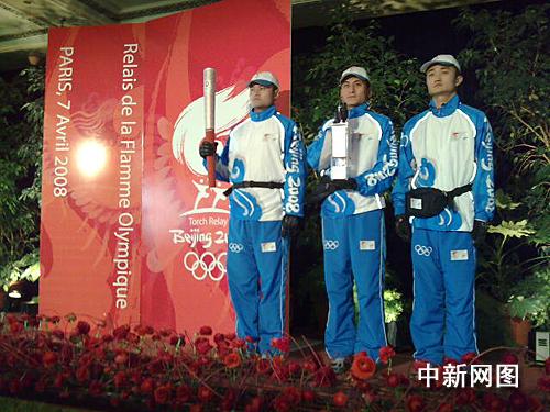 當地時間7日12時20分(北京時間18時20分),北京奧運會圣火“和諧之旅”在巴黎開始傳遞。這也是奧運圣火境外傳遞的第五站。巴黎是北京的友好城市,也是“現代奧林匹克之父”皮埃爾·德·顧拜旦的故鄉。圖為圣火傳遞工作人員在啟動儀式上。攝影:中新社記者 沈晨