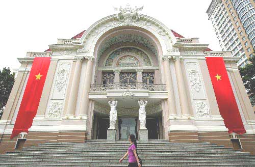 曾經受過法國殖民統治,法式建筑很多,如飯店,教堂等。火炬接力的首站胡志明市大劇院建于1898年,其內部裝飾和外部浮雕都是依照19世紀末法國的劇院風格修建,外觀裝飾精美,外墻上有各式各樣的浮雕和花紋,正面巨型的拱門頂端是兩位背生雙翼的女天使手扶圣琴的姿態,而拱門下方的兩個立柱前則是兩位女神,屬于典型的哥特式建筑風格。