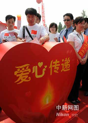 年輕的張燕帶著五歲在孩子在人群中等待著,雖然已為災(zāi)區(qū)捐了三次款,她說:“火炬?zhèn)鬟f活動(dòng)現(xiàn)在結(jié)束了但愛心傳遞仍在繼續(xù)。火炬?zhèn)鬟f和抗震救災(zāi)一樣,讓我們感受到了中國人凝聚力的傳遞。”