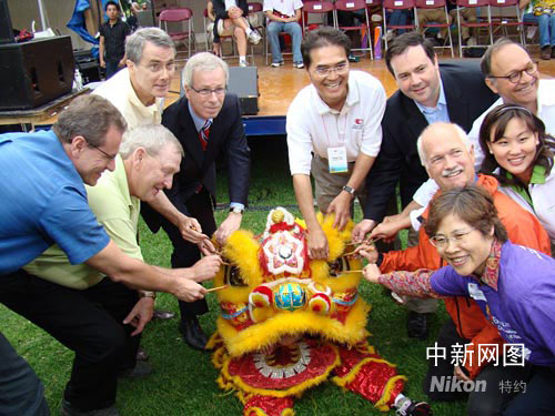 今年恰逢北京奧運年,中國國家旅游局帶來的北京奧運福娃成為耀眼的明星,讓龍舟節洋溢著令人激動的奧運精神。朱桃英總領事表示,2008北京奧運與2010溫哥華冬奧會把中加兩國緊密聯系在一起,共同譜寫奧運和平友誼的樂章,歡迎加拿大朋友們到中國去觀看奧運比賽、旅游觀光。單鋼新介紹說,北京奧運福娃的色彩與靈感源自奧運五環,象征著“和平、友誼、進步”的奧林匹克精神,五個福娃的名字“貝貝、晶晶、歡歡、迎迎、妮妮”連在一起,代表了北京對世界的盛情邀請——“北京歡迎你”!