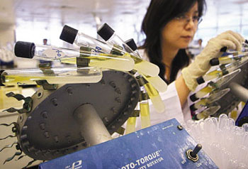 香港賽馬會賽事化驗(yàn)所七月七日開放予傳媒參觀,職員在處理藥檢樣本時會為樣本編碼,以確保化驗(yàn)工作絕對客觀。該化驗(yàn)所斥資超過六千萬港元購置先進(jìn)設(shè)備,包括二十五臺質(zhì)譜分析儀,為奧運(yùn)參賽馬匹的液體樣本進(jìn)行違禁藥物測試。 中新社發(fā) 古治茵 攝