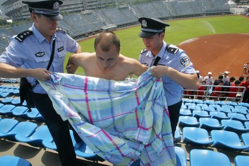 北京壘球場突發事件演練 警察帶走"裸奔"男(圖)