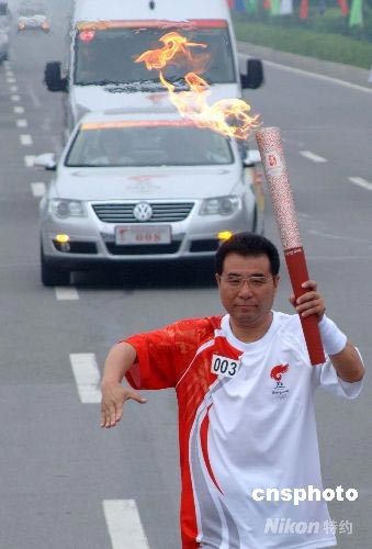 圖:“冬泳之王”游泳姿勢傳遞奧運火炬