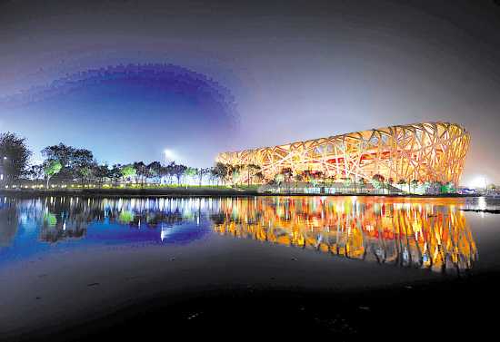 昨晚,北京奧運會主會場“鳥巢”夜景照明系統舉行竣工后的正式彩排。據介紹,鳥巢夜景照明由五個部分組成,其中主體照明以傳統文化元素“中國紅”為主色。鳥巢夜景照明系統可演示不同的動態效果場景,包括金色、銀色、紅色及紅色動態表演。 新華社記者 羅曉光 攝