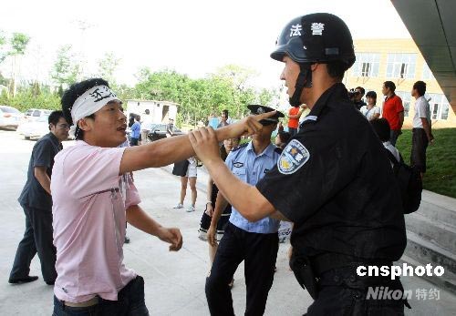 7月17日,剛剛遷到新址的奧運(yùn)村法庭,舉行了一場(chǎng)專門針對(duì)該法庭可能遇到的突發(fā)事件的奧運(yùn)安保演練,以提高對(duì)突發(fā)事件的處置能力。圖為北京奧運(yùn)村法庭發(fā)生“突發(fā)事件”,朝陽(yáng)法院法警中隊(duì)迅速趕到現(xiàn)場(chǎng)將鬧事“當(dāng)事人”控制。中新社發(fā) 劉新 攝