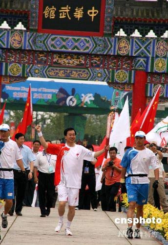 7月19日,北京奧運(yùn)火炬在大連傳遞,大連市市長夏德仁擔(dān)任最后一棒火炬手。 中新社發(fā) 周兆軍 攝
