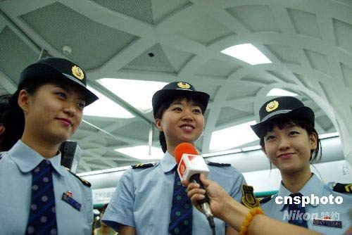 美女乘務員服務北京地鐵。中新社發 富田 攝