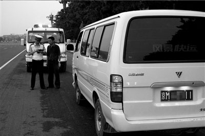 一輛尾號為“1”的白色面包車違規上路被查!⊥ㄓ崋T許建民攝