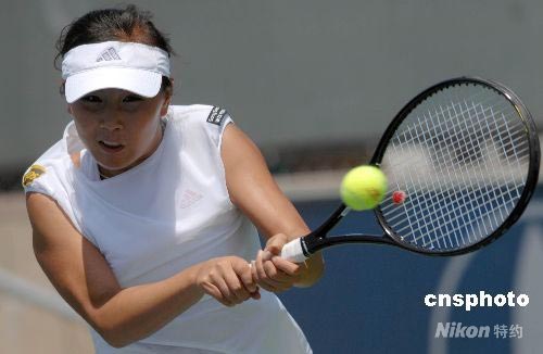 當地時間7月22日,華美銀行杯女子網球公開賽(WTA巡回賽之一)上,中國選手彭帥以2比0輕松戰勝美國選手朱莉·迪蒂晉級第二輪。第二天,彭帥將迎戰4號種子、俄羅斯名將薩芬娜(WTA排名第9)。包括揚科維奇((WTA排名第2)、小威廉姆斯(WTA排名第5)等世界女網名將參加了本次女子網球公開賽,其中有近30名選手將參加北京奧運會比賽。中新社發 張煒 攝
