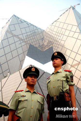 7月23日,北京武警正式進駐中央電視臺新址,開始擔負中央電視臺的安全保衛任務。奧運電視報道新聞中心近日將在中央電視臺新址開始啟用。中新社發 楊慧峰 攝