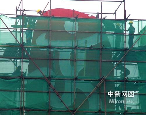 中新網(wǎng)北京七月二十四日電 以“舞動的北京”為主題的天安門廣場花壇今天在高溫天氣里加緊美化修飾。