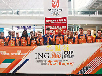 中新網7月28日電 據香港文匯報報道,被視為北京奧運男子足球獎牌有力競爭者的荷蘭國奧隊,以及美國國奧隊27日“前后腳”抵達香港。其中,率先到港的美國隊立即在下午開操備戰,而稍后抵達的荷蘭隊,則在機場接受訪問時,揚言要問鼎北京奧運獎牌。