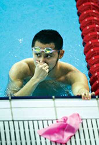 初入“水立方”的北島,神情怡然。下午6時(shí)30分,他先在游泳館西側(cè)的25米訓(xùn)練池邊接受按摩師的按摩。一刻鐘后,北島起身,走向50米比賽池,看臺(tái)上攝影記者的相機(jī)響成一片。