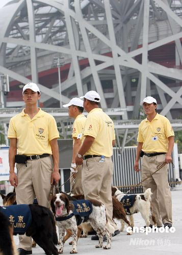 第29屆夏季奧運會開幕式彩排在北京國家體育場“鳥巢”內封閉進行,武警、特警現場戒備,保安嚴密。 中新社發 武仲林 攝