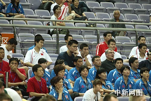 姚明坐在球員區的第一排,表情輕松,看來他心情還不錯。他的右邊是中國男籃的外籍助教,主教練尤納斯緊挨著他的左邊坐下,而姚明的國家隊好友劉煒則坐在他后面,方便交流。易建聯和王治郅坐在另外一邊,開始看比賽的易建聯臉色有些陰郁,顯然昨天的比賽中得分吞零蛋至今還讓他耿耿于懷,不過王治郅卻顯得心情開朗,笑容滿面,雖然他在對澳大利亞隊的那場比賽中也不過得到四分。