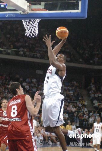 美國男籃國家隊奧運前在中國的首場熱身賽三十一日晚在澳門舉行,美國隊(白衣)114比82勝土耳其隊(紅衣)。 中新社發 畢永光 攝