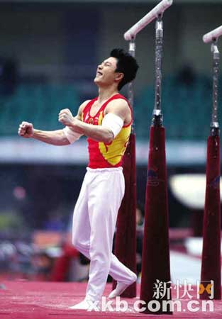 楊威的第三個奪金點是雙杠項目,他的雙杠實力可以說在全世界都數一數二。去年斯圖加特世錦賽上,楊威與雙杠這枚金牌失之交臂,賽后曾有人問起楊威失誤的原因,得到的回答是在體力上出了問題,這也給楊威敲響了警鐘。斯圖加特世錦賽后,楊威一直在加強體能方面的訓練。用楊威的話說就是,“和別人比雙杠的感覺可能就像別人和我比單杠。”昔日丹麥世錦賽上的三金王會不會在北京奧運會上重現呢?外界對楊威的表現充滿了期待。