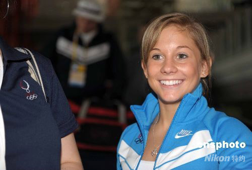 8月1日下午,美國(guó)女子體操隊(duì)運(yùn)動(dòng)員一行飛抵北京,其體操領(lǐng)軍人物肖恩.約翰遜、柳金等選手將征戰(zhàn)北京奧運(yùn)會(huì)。 中新社發(fā) 陳文 攝