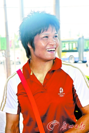 離北京奧運會開賽還剩下不到一個星期,中國代表團所有運動健兒均進入了最后的備戰階段,要在這個時候“逮”到沖金選手并進行采訪談何容易?不過,記者就在今天偶然得到了這一良機。大約在中午12時左右,記者正與兩名同行一起走在奧林匹克體育中心東門的馬路邊,迎面而來的是穿著紅色運動服的兩位女士!斑@不是冼東妹嗎?”記者曾經于2004年冼東妹在雅典奪冠的前夜,特地到她位于廣州體院的家里進行過采訪,對這位憨厚的廣東女子留下了深刻的印象。冼東妹也認出了記者,笑容滿面地打了個招呼。