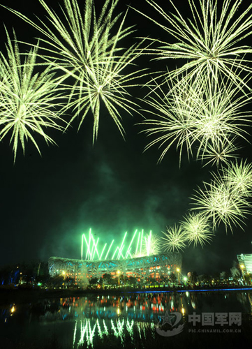 奧運(yùn)開幕式彩排發(fā)射禮花。馮凱旋 攝