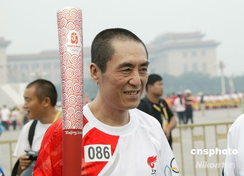 8月6日上午,北京奧運會圣火在北京市傳遞。著名電影導演、奧運開幕式總導演張藝謀擔任火炬手傳遞奧運火炬,在結束火炬傳遞后張藝謀感慨萬分,激動不已。 中新社發 馬毅行 攝