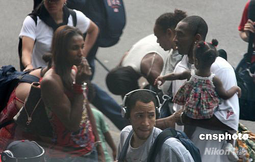 2008年8月6日15點33分,美國籃球隊到達北京首都機場。NBA球星科比攜全家來京參加北京奧運會。 中新社發 北有宋喬 攝