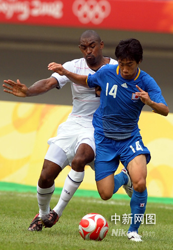 圖:奧運(yùn)男足美國日本隊在天津展開比賽
