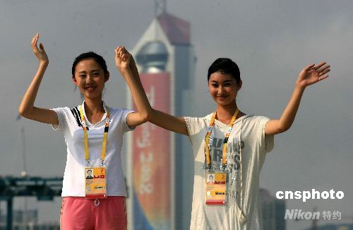 8月7日,青島迎來入夏以來最酷熱的天氣,奧帆賽頒獎禮儀小姐們在驕陽曝曬下進行排練,模擬奧帆賽頒發(fā)獎牌的所有過程。按照要求,在長達幾十分鐘的排練時間里,她們一直面帶微笑,舉止大方彬彬有禮。一遍遍苦苦排練熱得女孩們滿臉汗珠,但沒人叫苦,展示青島女孩最美的一面。 中新社發(fā) 周青先 攝