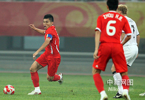 8月7日晚,中國(guó)國(guó)奧男足在沈陽(yáng)亮相,首場(chǎng)比賽對(duì)陣新西蘭隊(duì)。圖為中國(guó)隊(duì)隊(duì)長(zhǎng)鄭智正在控球。中新社記者張宇 攝