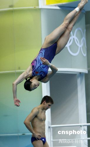 圖為吳敏霞在水立方適應場地。 中新社發 杜洋 攝