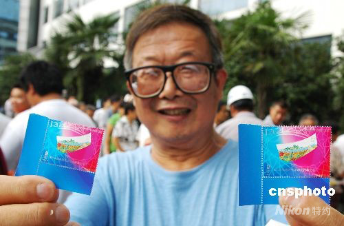 2008年8月8日,由中國郵政發行的《第29屆奧林匹克運動會開幕紀念》郵票在蘇州郵政局銷售火爆。據了解,該套郵票1套1枚,面值1.2元,蘇州限量發行600套。 中新社發 朱子寒 攝