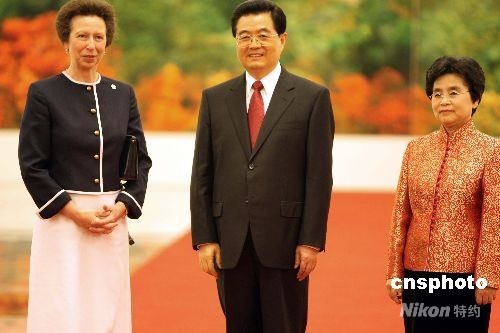 圖:胡錦濤夫婦歡迎英國(guó)安妮公主