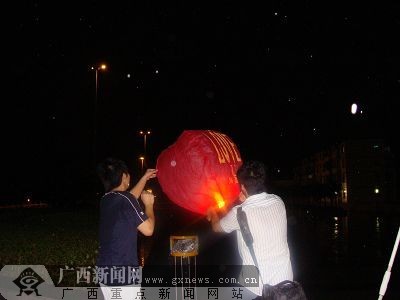 7日晚,南寧部分中學的一些學生在南寧市民生廣場舉行七夕放飛孔明燈活動,活動以“為災區祈福、為奧運加油”為主題。筆者在民生廣場上看到,由同學們自己出資購買的150盞孔明燈被先后點燃,緩緩地飄向無邊無際的夜空,不少同學將自己的祝福與心愿寫在燈上。