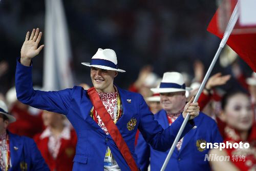 圖為俄羅斯代表團的旗手籃球運動員基里連科。中新社發 杜洋 攝