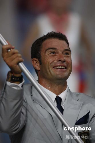 圖為入場儀式上意大利奧運代表團旗手皮劃艇名將羅西。中新社發(fā) 杜洋 攝