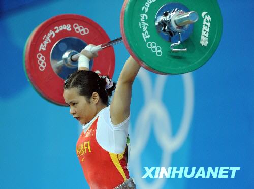 中國選手陳燮霞在女子48公斤級舉重為中國隊奪下首金。新華社記者 楊磊攝