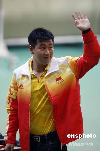 8月9日,2008年北京奧運會射擊項目比賽在北京射擊館進行的男子10米氣手槍決賽中,中國小將龐偉發揮出色,以688.2環勇奪金牌,幫助中國射擊隊贏得了本屆奧運會的首枚金牌,同時這也是中國代表團收獲的第二枚金牌。韓國選手榮國和朝鮮選手金榮洙分獲銀牌和銅牌,成績分別為684.5環和683環。 中新社發 盛佳鵬 攝